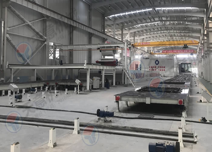 PC環(huán)形疊合板生產(chǎn)線采用高精度、高結構強度的成型模具,經(jīng)自動布料機把混凝土澆筑其中、振動臺振搗后并不立即脫模,而是經(jīng)預養(yǎng)護、蒸汽養(yǎng)護,使構件強度滿足設計強度時才進行拆模處理,拆模后的成品構件運輸至成品暫存區(qū)或室外堆場,而空模臺沿輸送線自動返回,形成自動化環(huán)形流水作業(yè)。